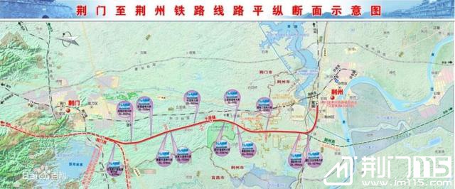 荆门高铁:荆门西站(2017年底动工,预计5台11线),沿江高铁(襄荆宜,荆宜段与呼南高铁共线)、呼南高铁(襄荆宜)、荆荆城际高铁、远期规划宜信徐高铁;
