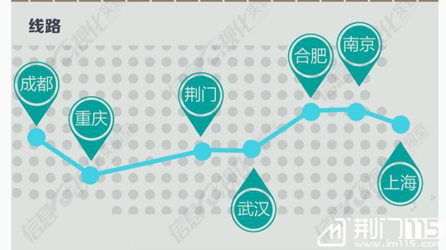 目前线路走向:上海—苏州—无锡—常州—镇江—南京—全椒—肥东—合肥—六安—麻城—武汉—荆门—宜昌—恩施—重庆—成都